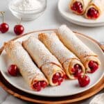 These Air Fryer Cherry Pie Taquitos are a quick and delicious dessert featuring warm, crispy flour tortillas filled with sweet cherry pie filling. Perfectly golden and dusted with powdered sugar, they offer a fun twist on classic cherry pie in a convenient handheld form.