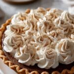 Store leftover pie covered tightly in the refrigerator for up to 3 days. Keep the whipped cream separate and add fresh before serving. Reheat pie slices gently in a low oven or microwave if desired, but the pie is also delicious served chilled.
