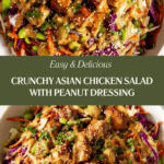 A vibrant and flavorful Asian Chicken Crunch Salad featuring tender marinated chicken, crisp shredded cabbages, fresh vegetables, and a creamy, tangy peanut dressing. Perfect for a quick, healthy, and satisfying meal packed with bold flavors and textures.