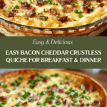 This Bacon Cheddar Crustless Quiche is a delicious and easy savory dish that requires no crust, making it lighter and quicker to prepare. Filled with crispy bacon, sharp cheddar cheese, and creamy eggs, it’s perfect for breakfast, brunch, or dinner. Enjoy the comforting flavors of a classic quiche with a simple, fuss-free approach.