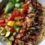 Balsamic Chicken & Veggie Orzo is a flavorful and wholesome one-pan meal perfect for busy weeknights. This dish combines tender marinated chicken with toasted orzo pasta and fresh vegetables, all brought together with a tangy balsamic glaze. It’s simple to prepare yet impressive in taste.