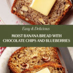 This classic banana bread recipe is moist, flavorful, and packed with delicious add-ins like chocolate chips, walnuts, cinnamon, and fresh blueberries. Perfectly spiced and easy to prepare, it makes for a comforting breakfast or snack.