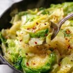 Let the cabbage cool completely before transferring it to an airtight container. Store in the fridge for up to 5 days; leftovers often taste even better after a day or two. You can also freeze the cabbage for up to 3 months in freezer-safe containers or bags. To reheat, warm on the stove over medium-low heat, stirring occasionally, or microwave in 1-minute intervals with stirring between. Add a splash of chicken broth if it seems dry after storing.
