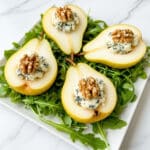- Serve: Optionally, serve the warm stuffed pears on a bed of fresh arugula or mixed greens for a crisp, peppery complement to the rich filling.