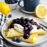 Keywords: blueberry crepes, cream cheese crepes, breakfast crepes, sweet crepes, fruit crepes, easy crepes recipe