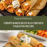 These Buffalo Chicken Taquitos are crispy, cheesy, and packed with spicy Buffalo flavor in every bite. Baked to golden perfection, they are a perfect handheld snack for game days, parties, or a fun dinner that everyone will love. Featuring a creamy mixture of shredded chicken, cream cheese, buffalo wing sauce, and shredded cheese, all rolled in warm flour tortillas and baked for a deliciously crunchy finish.