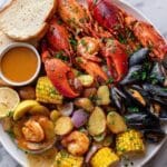 Keywords: Cajun seafood boil, seafood boil recipe, Cajun crab boil, shrimp boil, spicy seafood boil, seafood boil with sausage and corn, Southern seafood recipe