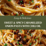 Caramelized Onion Pasta with Chili Oil is a flavorful dish that combines the deep sweetness of slow-cooked onions with the bold spiciness of homemade chili oil. Tossed with perfectly cooked pasta and garnished with Parmesan and fresh herbs, this dish offers a comforting yet exciting balance of sweet, savory, and spicy flavors. Ideal for a cozy dinner or meal prep, it’s simple to make, versatile, and satisfies a range of palates.