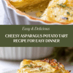 This Cheesy Asparagus Potato Tart is a savory and comforting dish featuring thinly sliced white potatoes layered with fresh asparagus, sharp white cheddar, and fragrant rosemary, all baked in a flaky pie crust with a creamy egg and heavy cream custard. Perfect for a cozy brunch or a light dinner, this tart combines fresh spring flavors with rich, cheesy goodness in every bite.