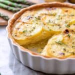 This Cheesy Asparagus Potato Tart is a savory and comforting dish featuring thinly sliced white potatoes layered with fresh asparagus, sharp white cheddar, and fragrant rosemary, all baked in a flaky pie crust with a creamy egg and heavy cream custard. Perfect for a cozy brunch or a light dinner, this tart combines fresh spring flavors with rich, cheesy goodness in every bite.