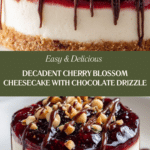 This Cherry Blossom Cheesecake is a delightful dessert featuring a creamy cream cheese filling, a crunchy graham cracker crust, and a luscious cherry pie topping. Finished with a rich chocolate drizzle and crunchy nuts, it’s perfect for special occasions or any time you crave a sweet treat.