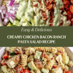 Chicken Bacon Ranch Pasta Salad is a flavorful and satisfying dish perfect for a quick lunch or a potluck favorite. Combining tender chicken, crispy bacon, fresh vegetables, and creamy ranch dressing, this salad delivers a delightful balance of textures and tastes.