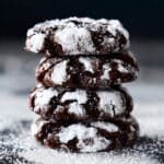 Chocolate Crinkle Cookies are a double chocolate, fudge-y, brownie-like cookie with a chewy center and crispy edges. These classic holiday treats are coated in powdered sugar for a beautiful crinkled appearance and are perfect for festive occasions or any chocolate craving.