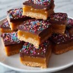Delight in these festive Christmas Caramel Bites, perfect for holiday gatherings. These rich, buttery caramel squares dipped in chocolate and topped with sprinkles bring joy and sweetness to any celebration. Easy to prepare in just 30 minutes, they make a charming and delicious treat for sharing with friends and family.