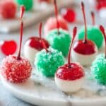 Celebrate the holidays with Christmas Drunken Cherries, a festive treat featuring maraschino cherries soaked in your choice of vodka, bourbon, or champagne, then dipped in rich white chocolate and coated with vibrant red, white, and green sanding sugar. These boozy, sweet bites are perfect for holiday parties and easy to prepare ahead of time.