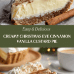 This Christmas Eve Cinnamon-Vanilla Custard Pie is a creamy and comforting holiday dessert perfect for festive gatherings. Featuring a buttery pie crust filled with a spiced custard infused with cinnamon and vanilla, this pie delivers a warm, aromatic flavor profile with a silky texture that is sure to delight family and friends during the holiday season.