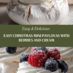 These Christmas Mini Pavlovas are delicate, crisp meringue nests topped with luscious whipped cream and fresh mixed berries, offering a festive and elegant dessert perfect for holiday celebrations. Light, airy, and irresistibly sweet, these bite-sized treats capture the spirit of Christmas in every bite.