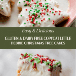 These Copycat Little Debbie Christmas Tree Cakes are a festive, gluten-free, and dairy-free treat perfect for the holiday season. Made with almond flour and sweetened with maple syrup, these moist cakes are shaped like Christmas trees, sandwiched with marshmallow cream, dipped in dairy-free white chocolate, and decorated with colorful sprinkles. A delightful allergy-friendly dessert that looks as good as it tastes!