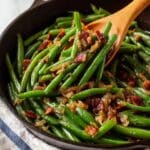 Store leftover green beans in an airtight container in the refrigerator for up to 4 days. The flavors actually deepen after resting overnight, making reheated beans taste even better. To reheat, warm gently in a saucepan over medium-low heat or microwave in short intervals, stirring in between. If the beans dry out when reheated, add a splash of chicken broth to restore moisture. For longer storage, freeze in freezer-safe containers for up to 3 months; thaw completely before reheating.