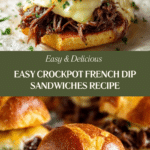 Keywords: Crockpot French Dip Sandwiches, slow cooker beef recipe, shredded beef sandwich, easy French dip, comfort food sandwich