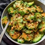 Cucumbers in Spicy Peanut Sauce combine crisp cucumbers with a creamy, savory peanut dressing that has a delightful hint of heat. This refreshing dish balances crunchy textures and bold flavors, making it great as a summer side, snack, or appetizer. Easy to prepare and bursting with taste, it’s sure to be a crowd-pleaser.