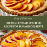 This Custard Peach Pie combines the sweet juiciness of fresh peaches with a silky, creamy custard nestled in a buttery crust. It’s a perfect dessert to celebrate summer’s bounty or to impress at any gathering with its beautiful golden top and vibrant fruit slices.