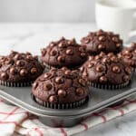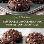 These Double Chocolate Chunk Muffins are a rich, moist treat inspired by Costco’s favorite jumbo muffins. Made with devil’s food cake mix and instant chocolate fudge pudding, they are loaded with semisweet chocolate chips for intense chocolate flavor in every bite. Perfect for breakfast, snacks, or dessert, these muffins bake up soft and fluffy with a luscious chocolatey finish.