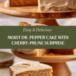Dr. Pepper Cake is a moist, richly-flavored chocolate cake infused with the unique taste of Dr. Pepper soda and enhanced by a medley of warm spices and dried fruits. This decadent dessert features a boiled fruit and soda base, combined with cocoa and spices, baked to perfection, and topped with a creamy, ginger-spiced Dr. Pepper frosting made from a reduced soda syrup and confectioners’ sugar. Perfect for celebrations or any occasion to satisfy a sweet tooth with a delightful twist.