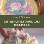 Keywords: Easter cake roll, pastel striped cake, sponge cake roll, cream cheese filling, festive dessert, spring cake