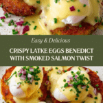 Easy Latke Eggs Benedict combines the crispy, golden goodness of potato latkes with silky poached eggs and rich hollandaise sauce, topped with smoky cold smoked salmon and fresh chives. This creative brunch twist on classic eggs benedict uses russet potatoes for the crispiest latkes, making it a perfect special occasion or weekend brunch dish that impresses with its texture contrast and decadent flavors.
