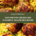 This Easy One Pan Chicken and Yellow Rice recipe combines juicy, seasoned chicken thighs with fragrant turmeric rice cooked together in a single pan. Perfect for a flavorful, fuss-free dinner that requires minimal cleanup, this dish features tender chicken with crispy skin nestled atop buttery, aromatic basmati rice enhanced with onion, garlic, and a hint of lemon.