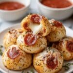 These Easy Pepperoni Pizza Bombs are a fun and delicious appetizer or snack featuring warm pizza dough pockets filled with savory pepperoni and melted mozzarella cheese. Baked to golden perfection and served with tangy pizza sauce, they are perfect for parties, game days, or a quick treat.