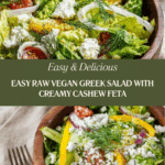 This Easy Raw Vegan Greek Salad is a fresh, satisfying dish packed with crunchy romaine, creamy avocado, and a flavorful homemade cashew feta. It’s oil-free, loaded with healthy fats from cashews, avocado, and olives, and perfect for a quick, nutritious meal that’s rich in texture and raw goodness.