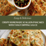 This Easy Scallion Pancakes with Soy Dipping Sauce recipe delivers crispy, golden pancakes layered with fresh scallions and served with a flavorful soy-based dipping sauce. These Chinese-inspired savory pancakes come together with a simple dough made from flour and boiling water, then pan-fried to perfection, making them a perfect appetizer or snack any time of day.