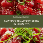 A quick and flavorful Easy Spicy Tuna recipe featuring fresh sashimi-grade tuna diced and tossed in a creamy, spicy sauce made with Kewpie mayonnaise, sesame oil, and chili oils. Perfect as a light appetizer or a tasty main served immediately for the freshest taste.