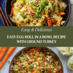 Egg Roll in a Bowl is a quick and healthy deconstructed egg roll recipe that captures all the delicious flavors of a classic egg roll without the wrapper. Featuring ground turkey, shredded cabbage, carrots, and a savory soy-ginger sauce, this comforting skillet dish is perfect for a low-carb, easy weeknight dinner served over rice and garnished with toasted sesame seeds and green onions.