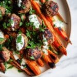 - Serve: Once cooked, serve the meatballs and roasted carrots hot, generously smothered with the yogurt sauce and garnished with fresh dill or parsley if desired.