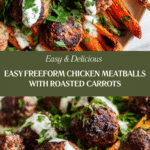 These freeform chicken meatballs paired with roasted carrots and a tangy yogurt sauce make for a comforting and healthy meal. With simple ingredients and easy steps, it’s perfect for a cozy evening dinner that everyone will enjoy.