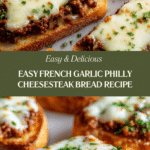 This French Garlic Philly Cheesesteak Bread recipe combines the bold flavors of Philly cheesesteak meat, sautéed onions and peppers, and melted provolone cheese on a crispy French garlic bread base. Perfect for a quick and satisfying meal, it’s baked to bubbly, cheesy perfection in just 30 minutes.