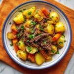 This comforting French Onion Pot Roast recipe combines tender chuck roast slow-cooked with sweet onions, baby potatoes, and carrots in a rich, flavorful French onion soup broth. Perfect for an easy, hearty meal that requires minimal prep but yields melt-in-your-mouth meat and savory vegetables.