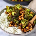 Keywords: garlic broccoli stir fry, vegan stir fry, quick dinner, easy broccoli recipe, chickpea stir fry, plant-based meal, healthy stir fry