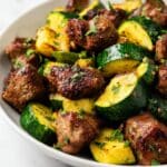 Garlic Butter Steak Bites with Zucchini is a quick and satisfying low-carb meal featuring tender steak cubes seared to perfection and crisp zucchini tossed in a rich garlic butter sauce. Ready in just 20 minutes, it’s perfect for a flavorful weeknight dinner.