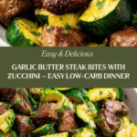 Keywords: steak bites, garlic butter steak, zucchini recipe, low-carb dinner, one pan meal, quick steak recipe, sautéed steak, weeknight dinner