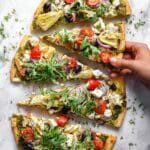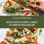 This Greek Flatbread Pizza is a vibrant and flavorful twist on traditional pizza, loaded with Mediterranean ingredients like spinach pesto, feta, and artichokes. It comes together quickly and makes a perfect weeknight meal or a delightful appetizer for gatherings.