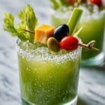 The Green Bloody Mary, or Verde Mary, is a fresh and vibrant twist on the classic cocktail. Featuring tomatillos, serrano chile, cucumber, and fresh cilantro, this cocktail blends tangy, spicy, and herbaceous flavors with a zing of lime and a touch of sweetness. Perfect for a refreshing brunch drink or an exciting cocktail hour, this recipe is quick to prepare and served chilled with a salted, sugared rim for an extra burst of flavor.
