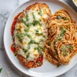If you’re looking for a lighter, yet delicious version of classic chicken parmesan, this healthy baked chicken parmesan recipe is perfect for you. It’s baked to crispy perfection, topped with bright marinara sauce and gooey melted mozzarella for a satisfying dinner everyone will love.