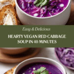 This Hearty Red Cabbage Soup is a vibrant and flavorful vegan and gluten-free dish made with red cabbage, yellow potatoes, carrots, celery, and navy beans, enhanced with Dijon mustard and apple cider vinegar. Perfect for a quick, filling weeknight dinner, it combines sweet, tangy, and savory notes in a wholesome veggie stew.