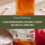 This homemade coconut syrup is a quick and delicious way to add tropical sweetness to your drinks and desserts. Ready in just five minutes, it’s perfect for coffee, cocktails, or drizzling over pancakes.