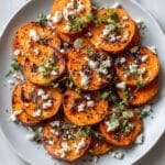 - Top: Sprinkle crumbled feta cheese generously over the warm sweet potato rounds, allowing it to soften slightly from the heat.