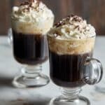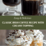 This classic Irish Coffee recipe combines hot brewed coffee, smooth Irish whiskey, and a touch of sweetness, topped with softly whipped cream and a hint of chocolate shavings. It’s a warm, comforting drink perfect for a cozy evening or after-dinner treat.